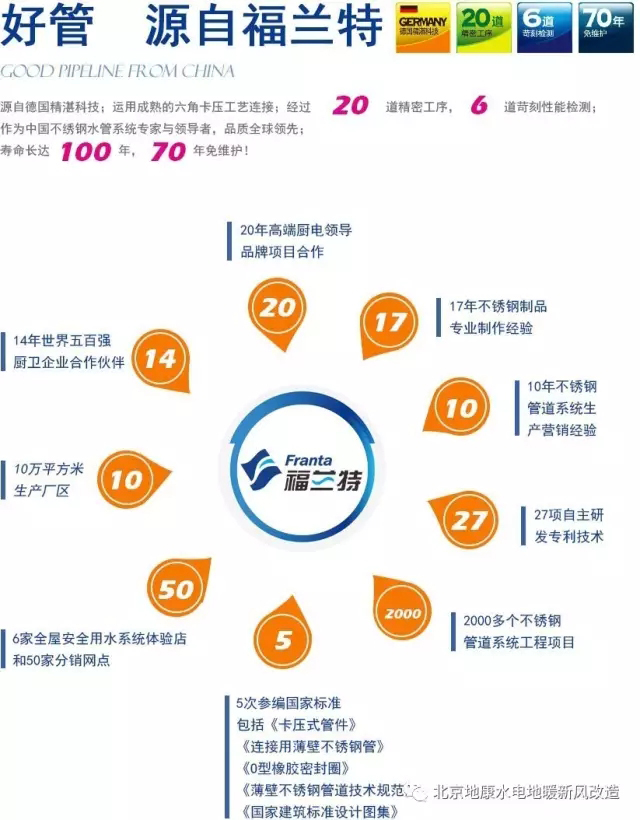 北京地康引进第四代饮用水管——福兰特不锈钢水管,产品安装双质保。